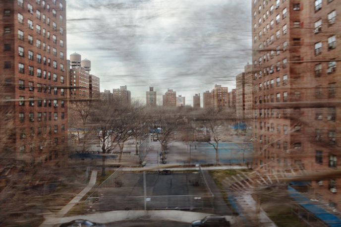 High rise public housing viewed from the 3 train, Brownsville, Brooklyn, 2012.