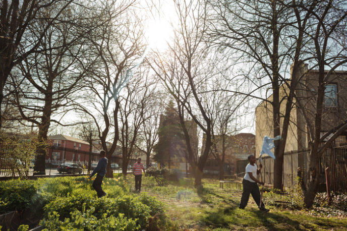 Children play at the volunteer farm ran by Project EATS, a non-profit that promotes healthy eating in low income