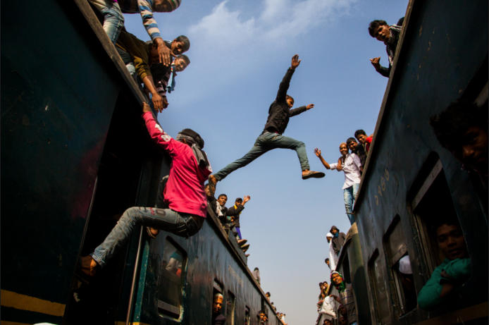 and Dhaka become the only means of transportation. The sheer mass of people who travel to Tongi by these trains is