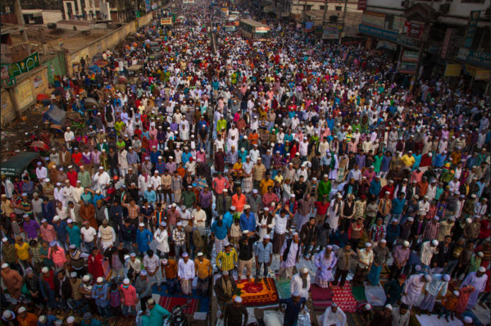 large number of devotees and many of them perform the prayer on the road, at Tongi station or on the trains.