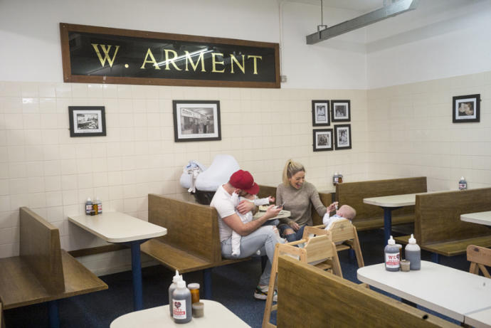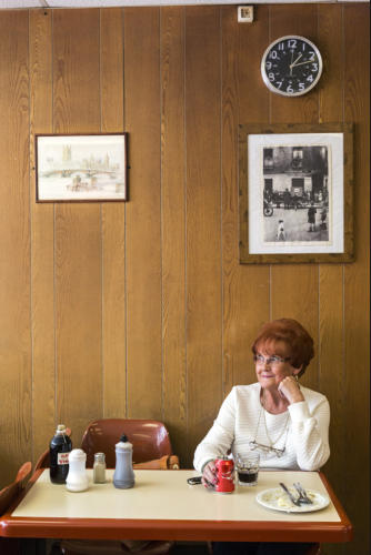 Waiting for closing time at Manze's Pie and Mash shop, Peckham, London.