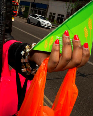 frenetic East End. Intense, colourful snapshots of people, fabrics, architecture,