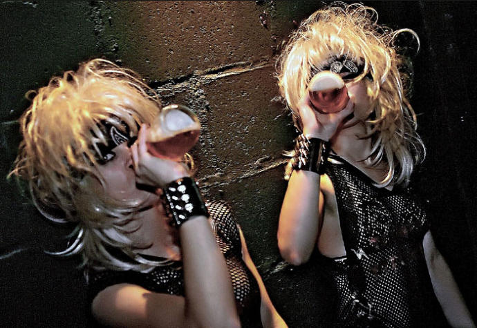 toe in gold lamé, a girl squatting in cowboy boots with a plastic pint glass who has the look of someone who’s not quite