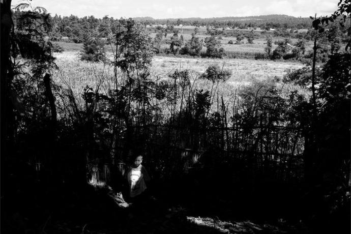 Nisa (11 years old from Hatiya village, Makawanput district). Nisa in the corn fields. After her father died, Nisa's mother