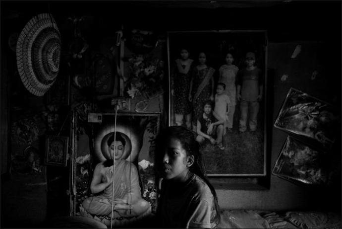 Sima (13 years old from Gadi village, Makawanpur district, Nepal) in her bedroom at home.