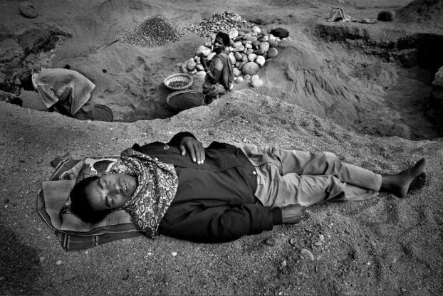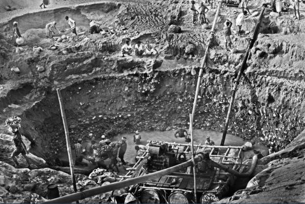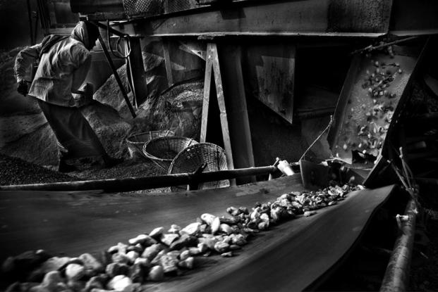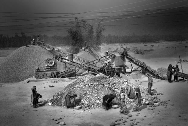 They dig, pull out the stones, and carry them on their heads to the hundreds of noisy stone-crushing