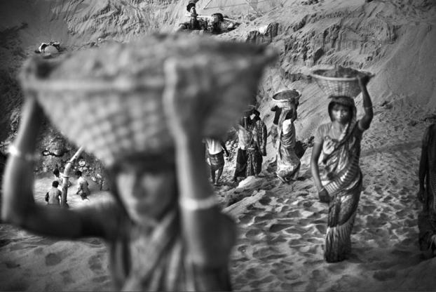 Indo-Bangla border. More than 5000 men, women and children are engaged as stone labourers here.