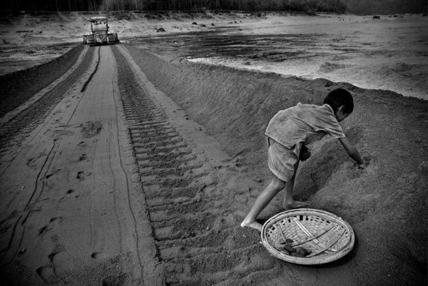 areas. Laborers dig the riverbed haphazardly disrupting the balance of the ecosystem.