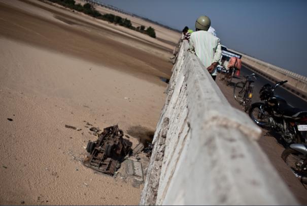 Locals in Allahabad wait for a local bus on the National Highway. At night on the National Highway from