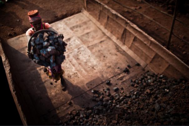 Workers load a truck with manganite from a mine in Joda. Joda is located in Orissa and is part of India's