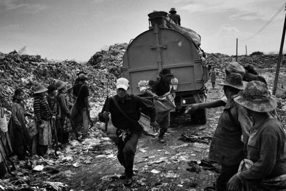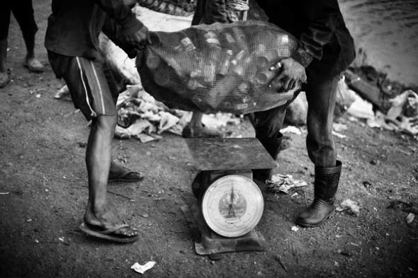 Burmese migrants in the dump search for recyclable material seven days a week.