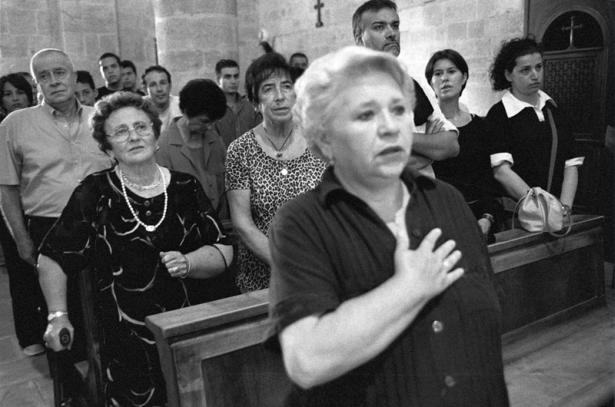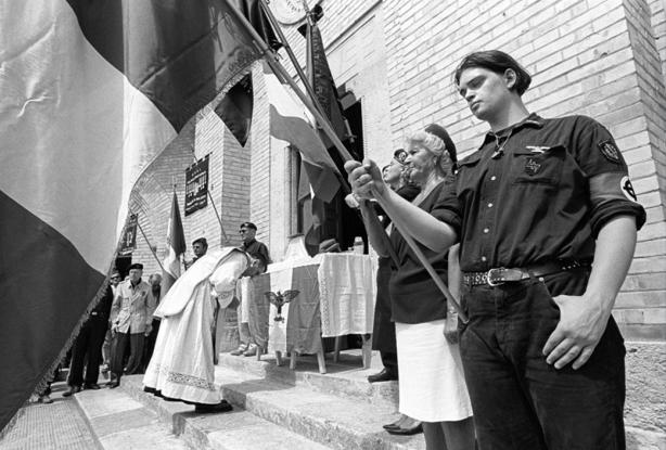 Right-wing radicals at a church service in memory of Mussolini inside the church of the San Cassiano