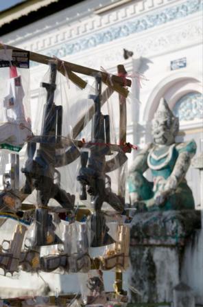 find photos of the ruling generals praying and paying their respects at the altars. Buddhists believe that you