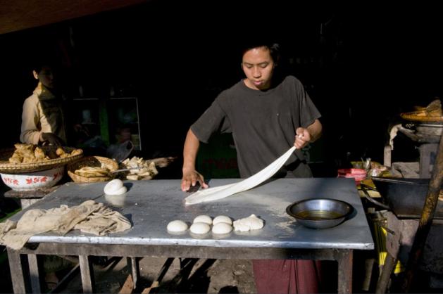 who take it in turns to cook for the monks -. We talk in French, which he learned in Laos during a long stay