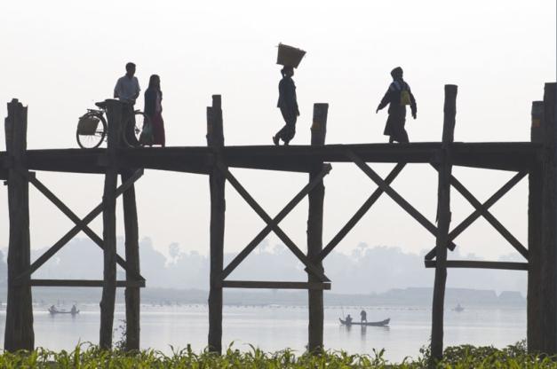 Villagers crossing the famous U Bein’s wooden bridge near Amarapura on the Irrawady river.