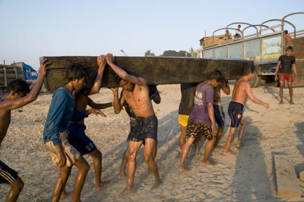 I went to photograph the constant loading of huge beams of teak unto boats of all sizes. The precious cargo