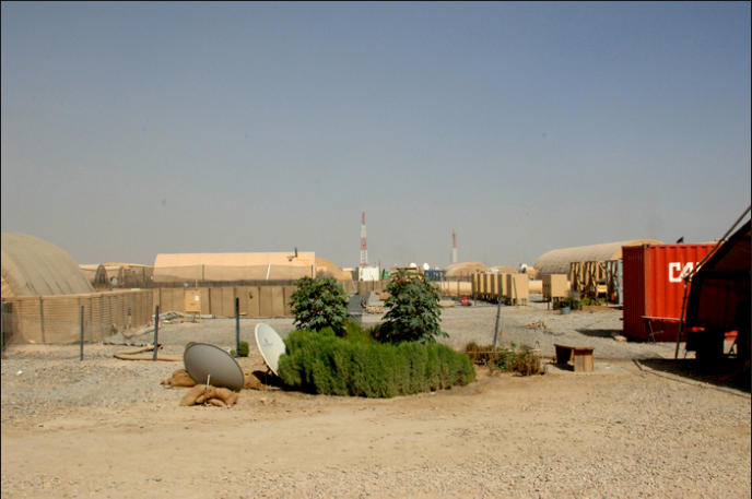 Kandahar Air Base at 4am. I felt that the blurring of the image and the green light which was on all night, captured the