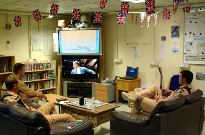 RAF Tornado pilots watching a Bond film whilst waiting in readiness to scramble in response to any emergency in