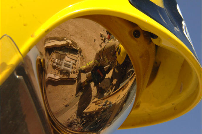 cameras located on all 4 corners of the vehicle. The walls seen here are part of the protective perimeter of Camp