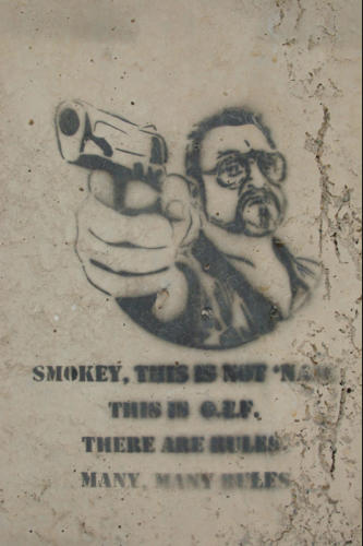 armed forces make their environment in theatre more friendly and personalised by painting murals on the grey,