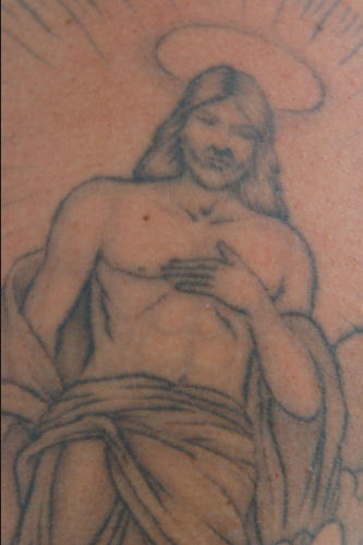 Tattoo of Jesus on the arm of an RAF soldier who was