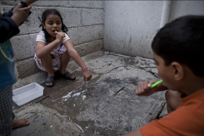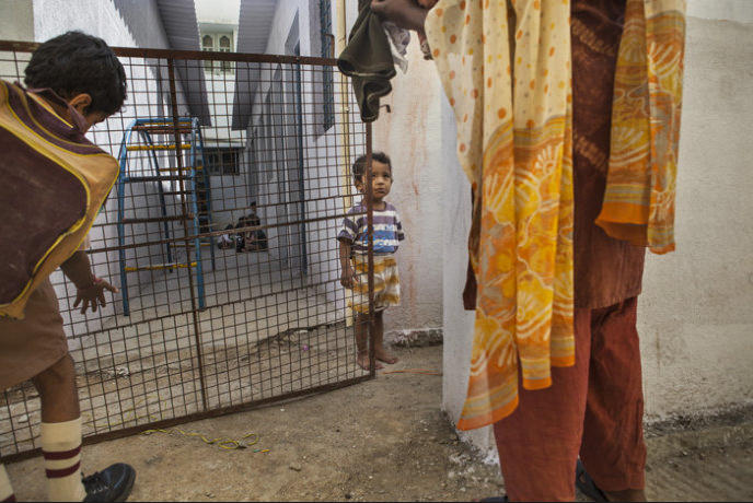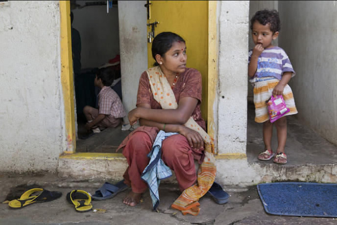 Suraj and Suresh watch television while their father sleeps. Their father works as a taxi driver and normally works long hours.