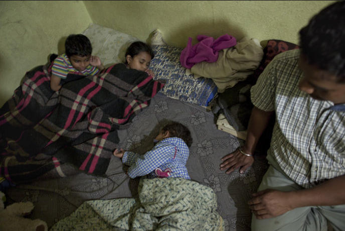 Prem Bahadur, Somaiya and their children asleep after a long day.