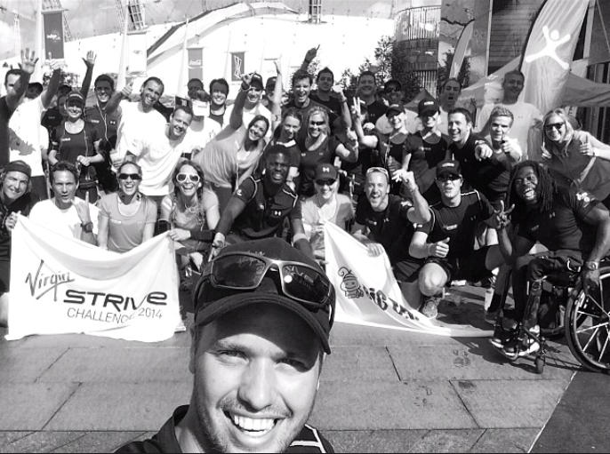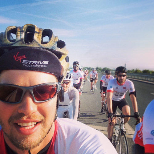 We started at London’s O2 Arena. Just before the Virgin Strive Challenge core team and other participants set off for 3