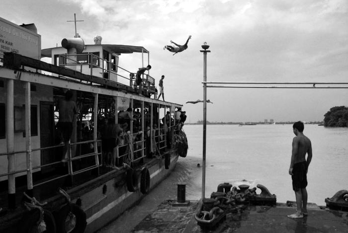 The Hooghly (also known as the Ganga river) attracts thousands of people who use the waters to bathe and accomplish their daily chores. But among them all is a group of daredevil young kids who like to enthral people with their dives. Most of them are not professional swimmers but when it comes to variety and sheer guts they have no comparisons. They have modified their dives and given them special names: chil, chit, gitki, back-volley. They jumpfrom the ferries, jettes and ghats along the Ahiritola to Bagbazar route of the river.