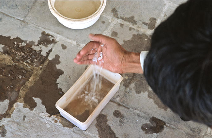 Izzat Ullah mixing chemicals, Peshawar 2012.