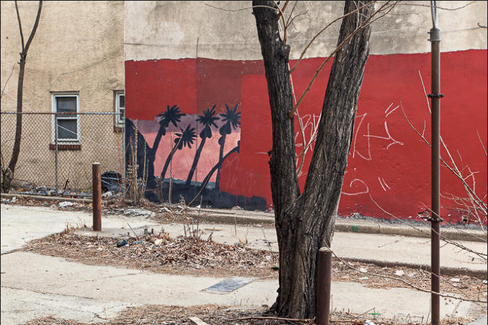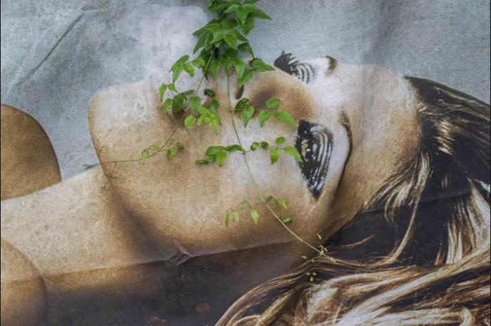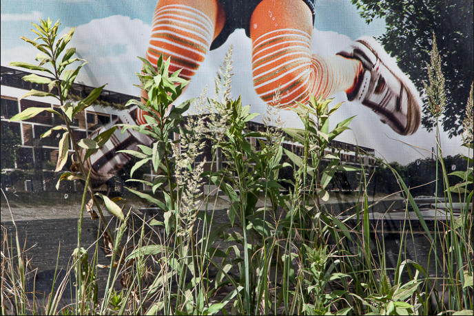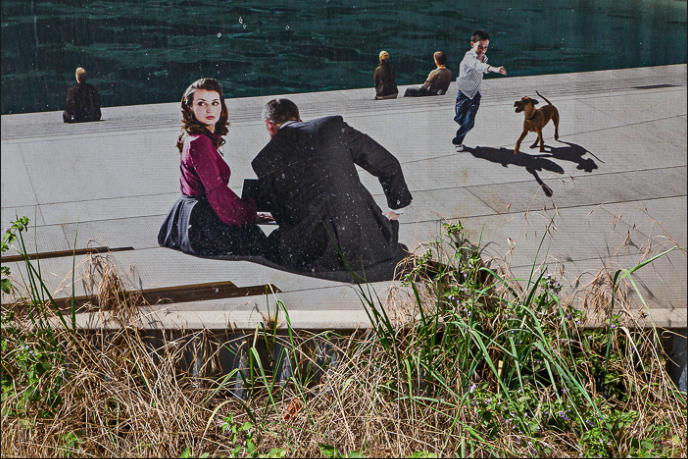 the leaves in my photo contribute another layer, by blending in with the billboard scenery and reminding the viewer to