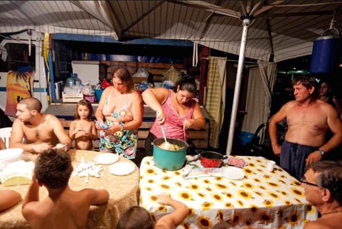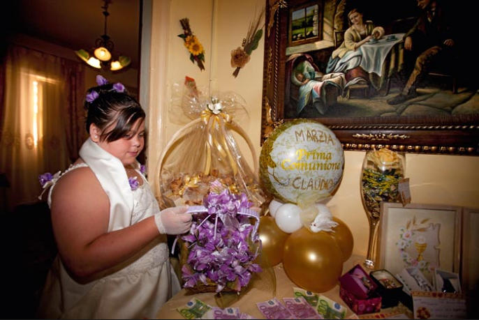 Mauro D’Agati met Marzia on a beach near Palermo in 2007 and began taking pictures of her and her family during their summer vacation. The unexpected ease of interaction between photographer and subject encouraged D’Agati to undertake a series depicting Marzia’s transition from childhood into adolescence, with the ambition of spending several days with her family every year. The resulting five volumes of this publication show the family over a period of about five years: their summer vacations on an illegal camping lot in the industrial area of Termini Imerese, the celebration of Marzia’s and her brother Claudio’s First Communion, family reunions with abundant food andgames, and the curiosities and family portraits at nonna’s house in Palermo’s deprived Zen 2 district. Throughout this close photographic chronicle, Marzia represents the epitome of the anti-model, defying prefabricated aesthetic standards while candidly emanating joy and self-confidence.