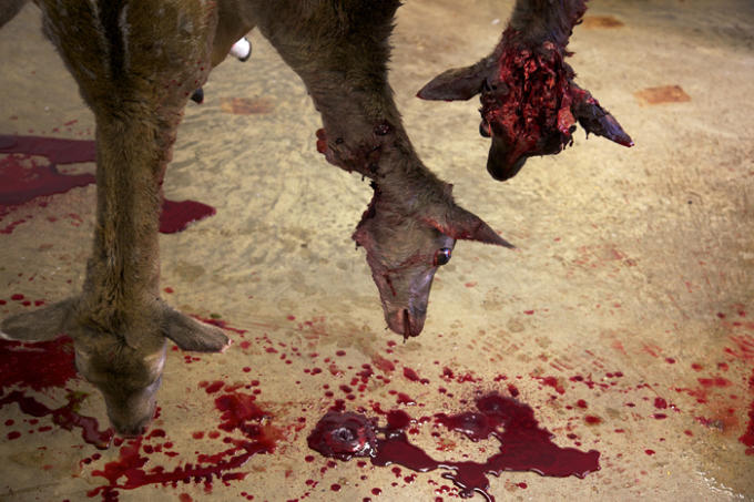 Looking after deer in the park. Glyn Ingram, Deer Keeper, butchering deer before the cold store.