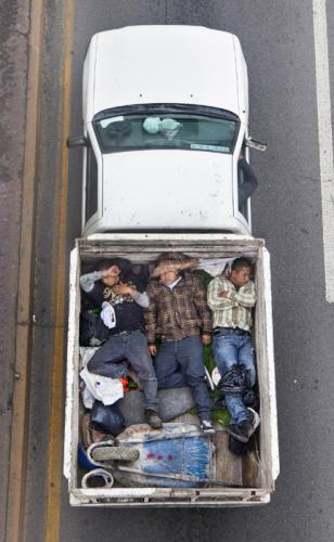 These images are a rare view into how car-pooling is practiced by workers in Mexico in order to transport themselves