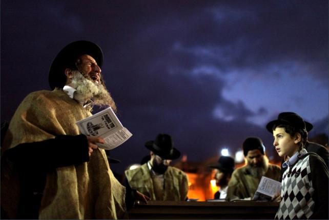 2012 marking Tisha B'Av. Religious Jews stay up all night and sleep at the Western Wall as they recite