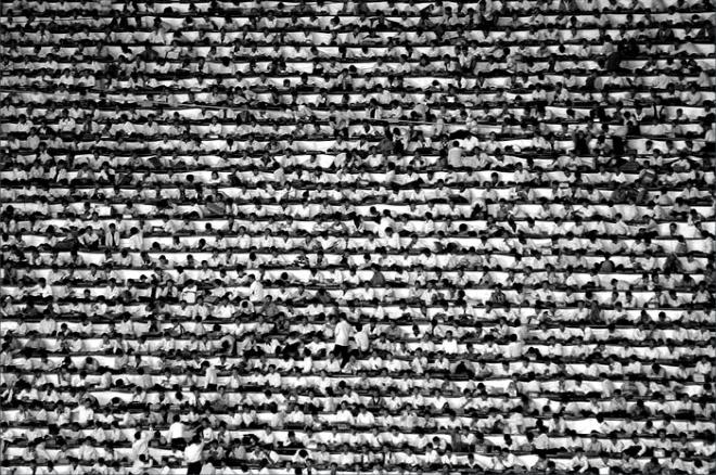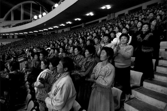 North Korean spectators clapping their hands during the Arirang performance held at the May Day Stadium in