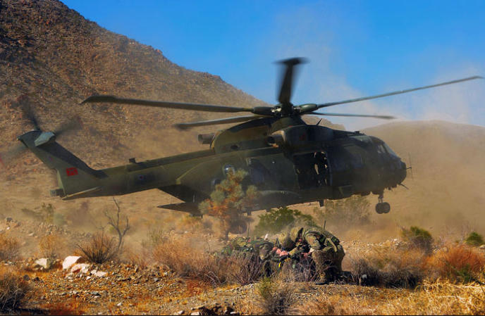Dessert. The troops were flown in by Merlin helicopter during the initial stages of the week long final exercise of Black