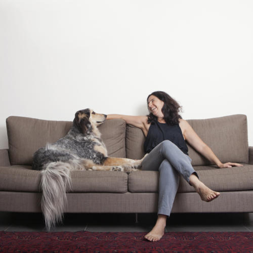 Adi Ziony 24 years old and her dog Blake, aged 3. Tel Aviv, Israel, May. 15, 2012.