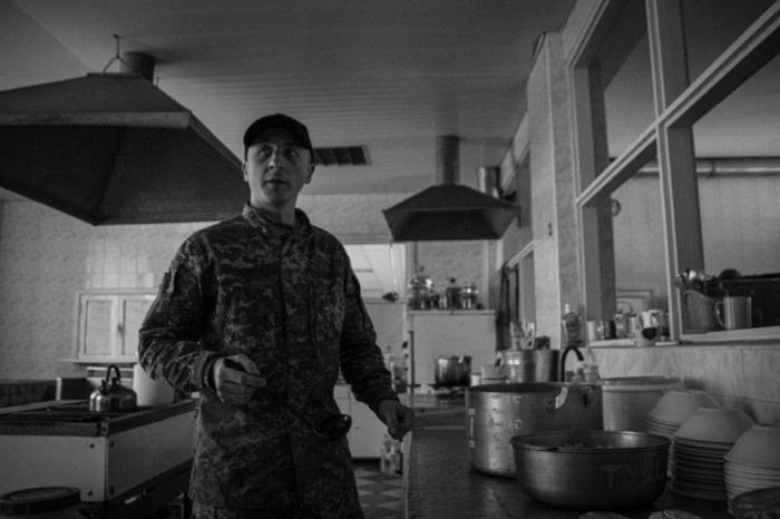 COOKING ON FRONT LINE, POKROVSK, DONETSK We made our way into a countryside village where a Ukrainian military unit had positioned. The area had been hit hard the day before, as artillery shells lay on the ground. The Ukrainian soldiers were on edge. But despite the tense atmosphere, inside a small village building was a makeshift canteen. A soldier was cooking soup for his comrades. A moment of normality.