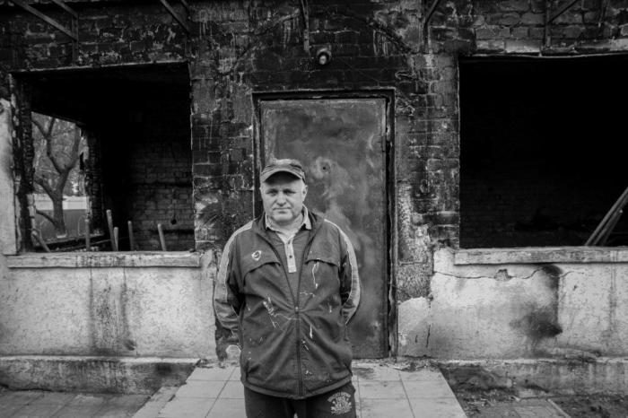 NOTHING LEFT, BOHDANIVKA After invading Russian soldiers forcefully moved into his home in Bohdanivka, Sergei and his family had no choice but to co-exist with the occupiers for weeks on end. But one night, a fierce battle took place as Ukrainian soldiers attempted to recapture the town. Tanks were on fire and neighbouring homes had been destroyed. The conflict prompted Sergei’s family to evacuate. A month later when the occupiers had left, Sergei returned to see a proportion of his house burnt out. He said he has no money to fix anything, but will not leave again.