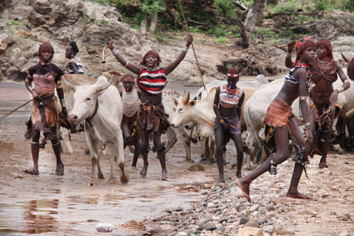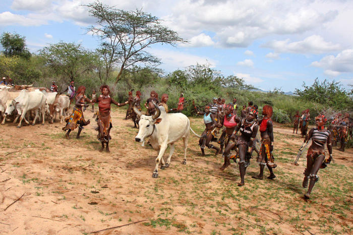 Tradition of the Hamer tribes, the bull jumping ceremony is a rite of passage in Ethiopia's Omo Valley. It represents a life-