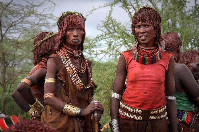 The Hamer women smear their skin and tightly braid their hair with a mixture of