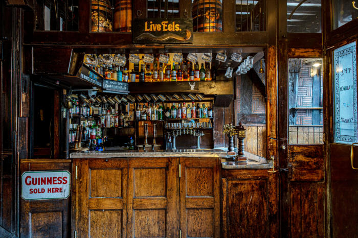 expertly lit photographs of centuries-old snugs, elegant marble bar tops, rich wood-